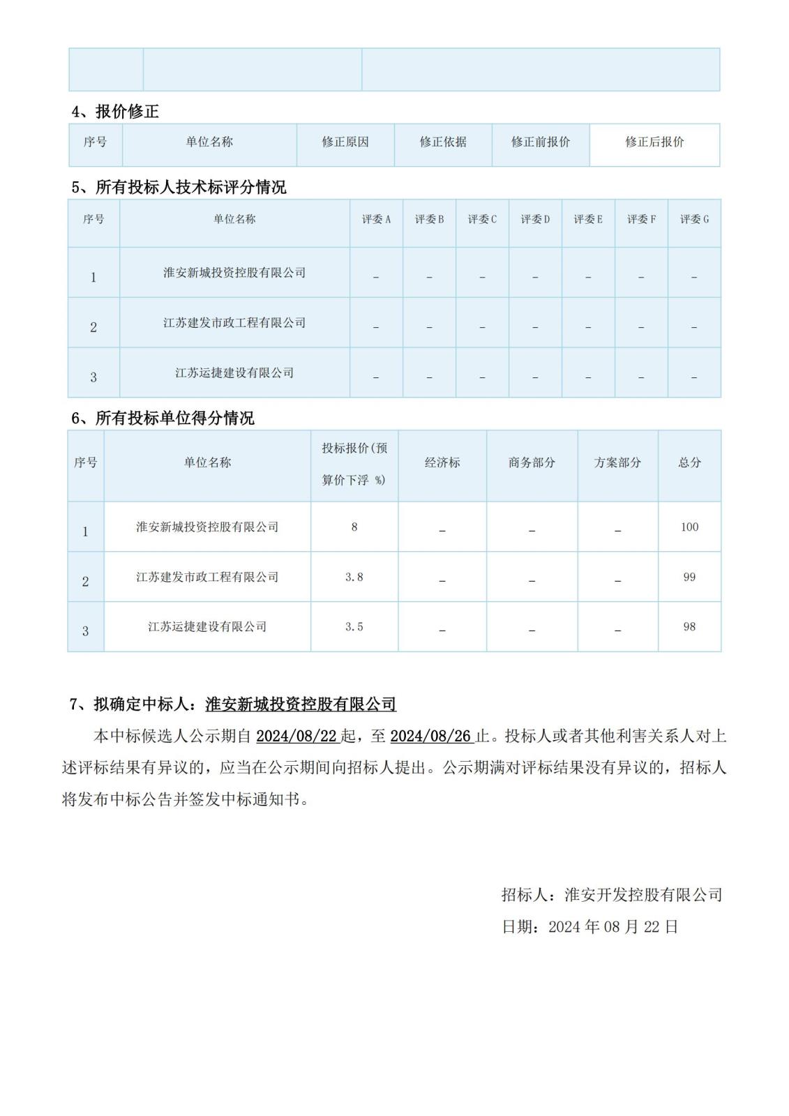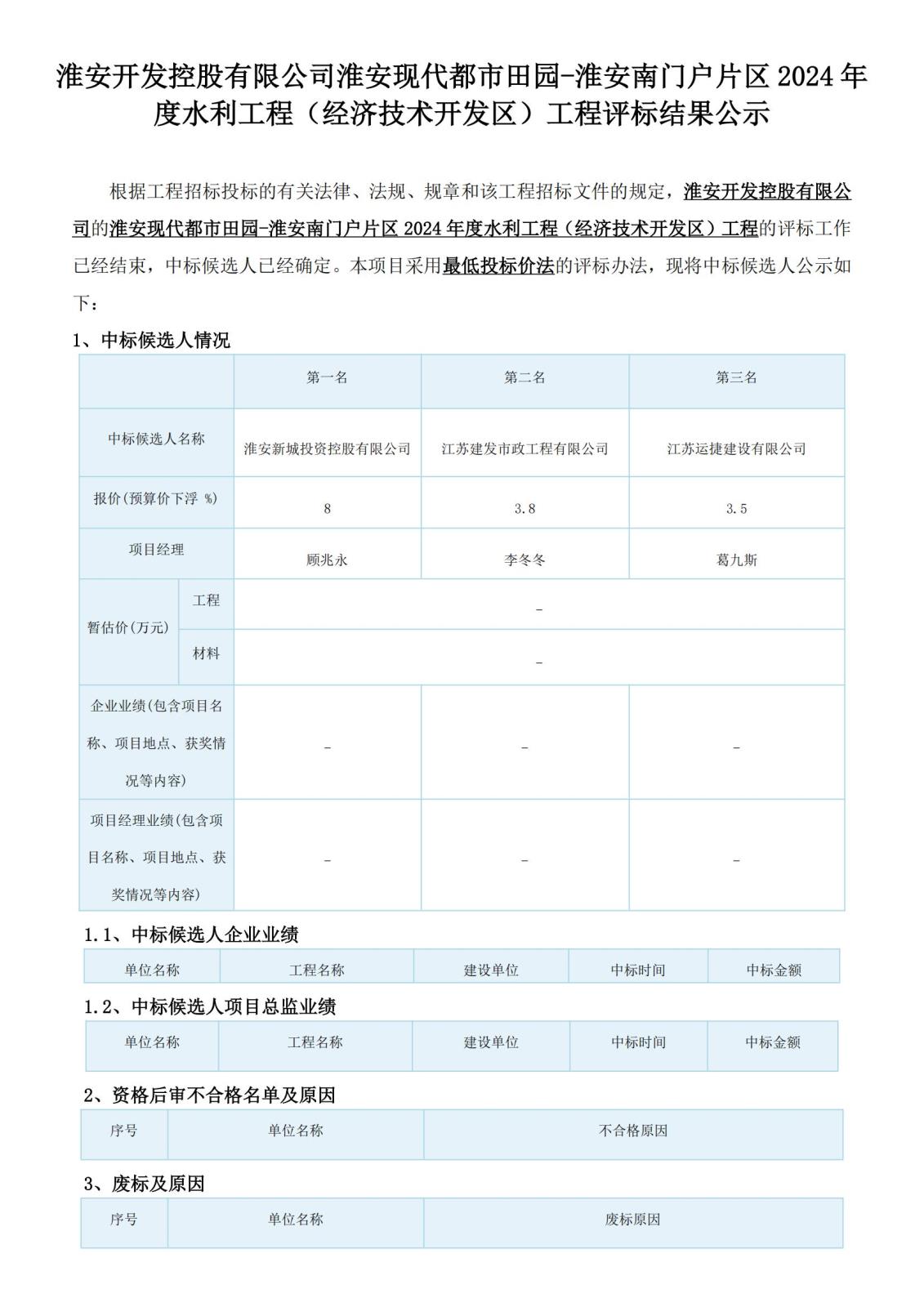 淮安開(kāi)發(fā)控股有限公司淮安現代都市田園-淮安南門(mén)戶(hù)片區2024年度水利工程(經(jīng)濟技術(shù)開(kāi)發(fā)區)工程評標結果公示