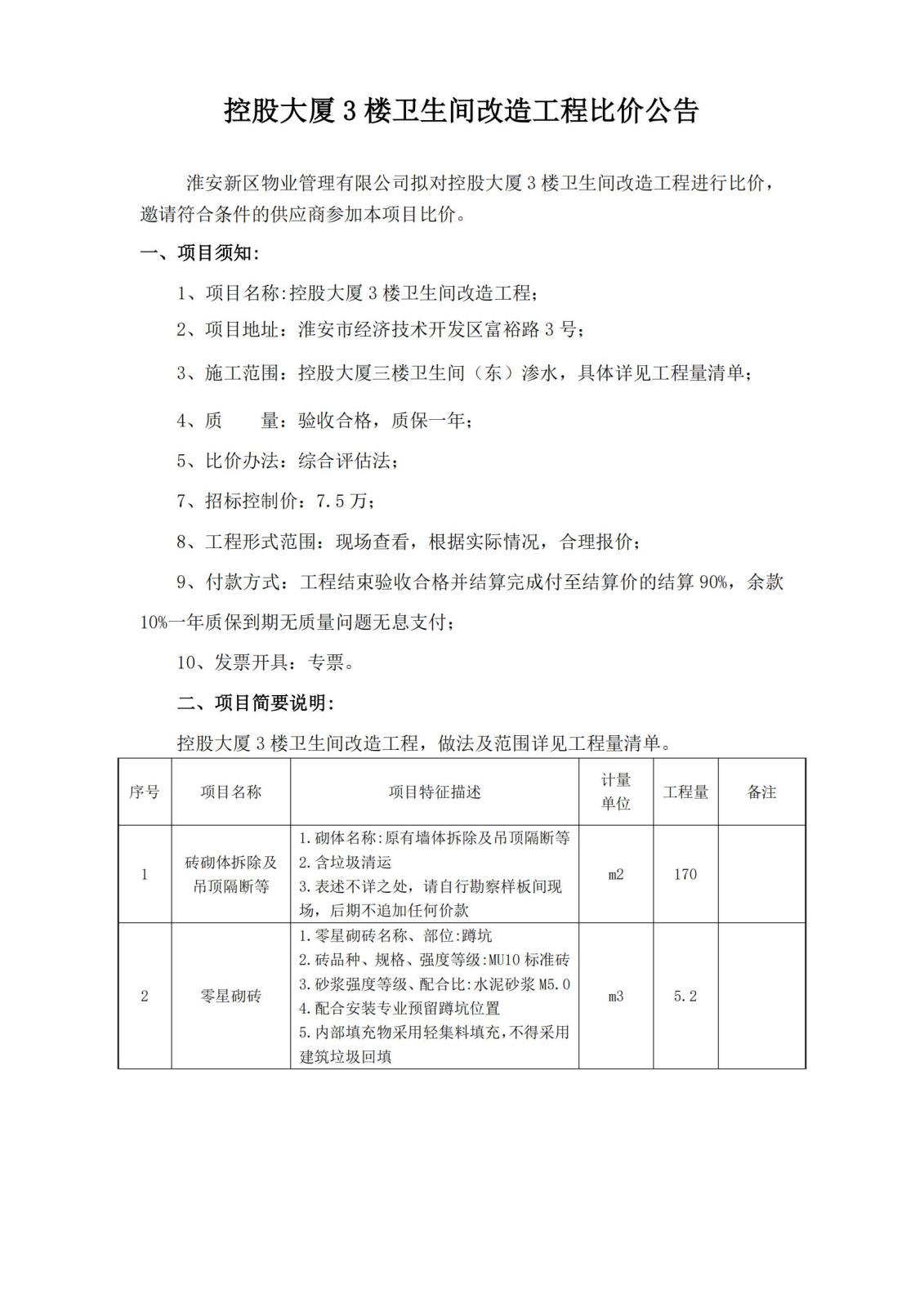 控股大廈3樓衛生間改造工程比價(jià)公告