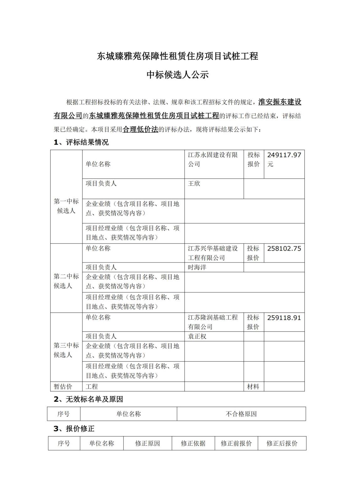 東城臻雅苑保障性租賃住房項目試樁工程中標候選人公示